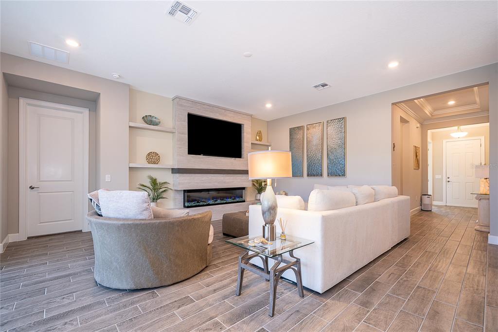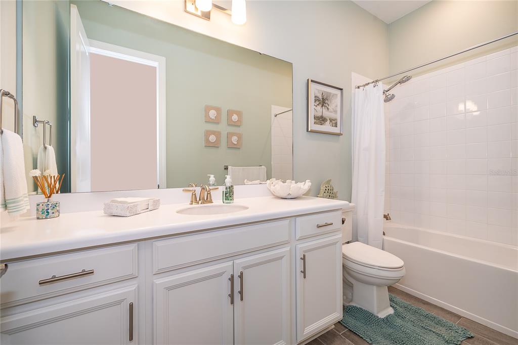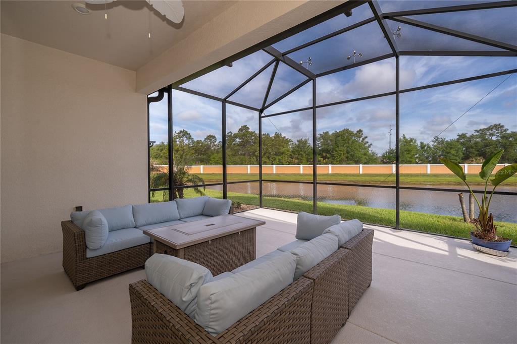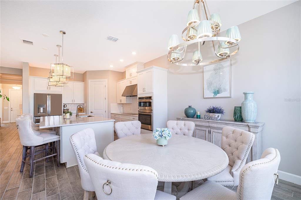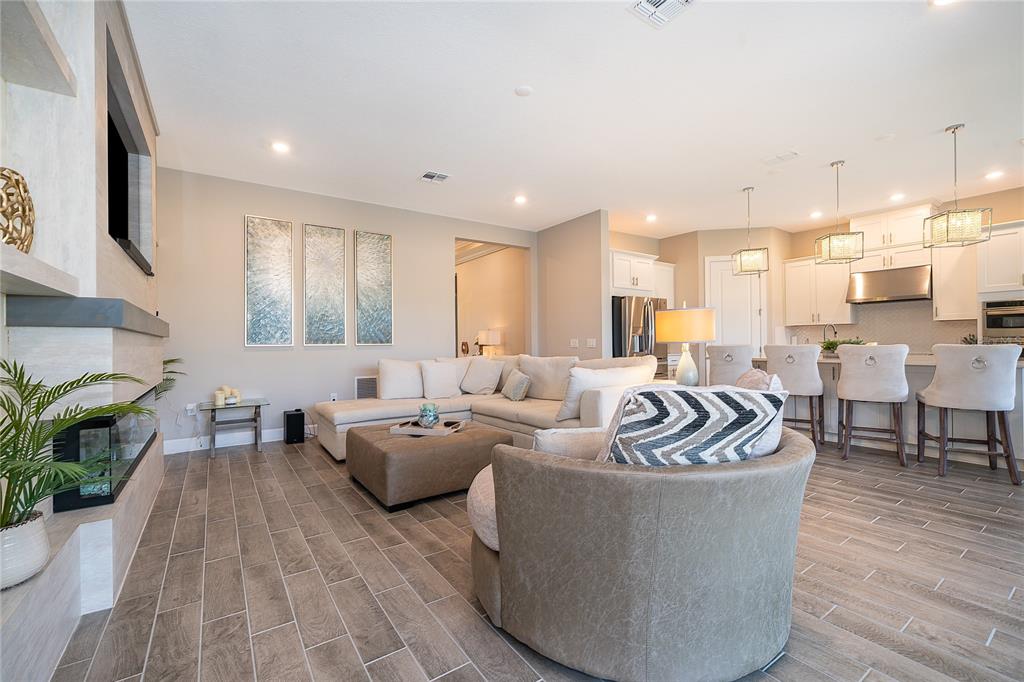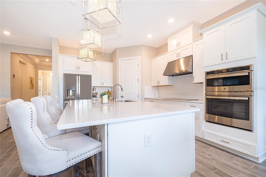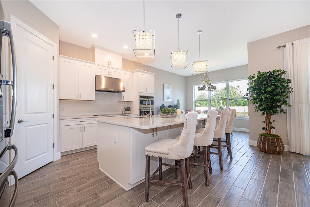 Step inside to find elegant PORCELAIN TILE flooring in the main living areas, complemented by plush carpeting in the bedrooms for added warmth and comfort. The home is enhanced with 5 inch baseboards and stunning tray ceilings that add architectural charm and a sense of openness. The heart of the home is the gorgeous kitchen, featuring stylish fixtures, ample counter space, and a convenient corner closet pantry, perfect for both everyday living and entertaining. Natural light flows effortlessly into the living spaces, creating a bright and inviting atmosphere. The primary suite is a true retreat, boasting a generously sized bedroom and an expansive walk-in closet. Additional bedrooms provide flexibility for guests, hobbies, & more. Enjoy outdoor living year round on the screened lanai, ideal for relaxing or hosting gatherings. The 2 car garage is finished with durable and attractive epoxy flooring, adding both function and flair. With high end finishes, thoughtful upgrades, and a prime location within a vibrant, amenity-rich community, this home offers the perfect blend of luxury and low maintenance living. Located in a GATED/GUARDED, 55+ resort-style community offering 3 restaurants, a SOFTBALL field, PICKLEBALL, TENNIS Courts, SHUFFLEBOARD, 14 HEATED POOLS, 2 dog parks & 2 championship Golf Courses! Live in your own private city! Maintenance fee includes fiber optic internet & cable. Conveniently located to the hospital & the newly built Poinciana Lakes Plaza shopping center with a grocery store & restaurants! Come see what this incredible home has to offer!