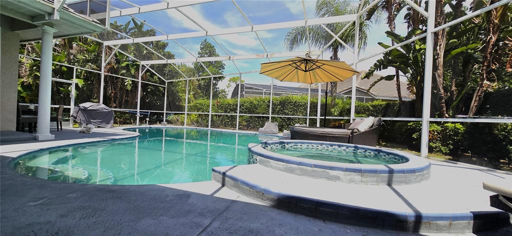 Enjoy Florida living at its best with a sparkling saltwater pool, screened-in patio, and remote-controlled ceiling fans, creating the perfect setting for relaxing evenings or entertaining guests. The recently retiled pool adds an extra touch of luxury to your outdoor oasis.