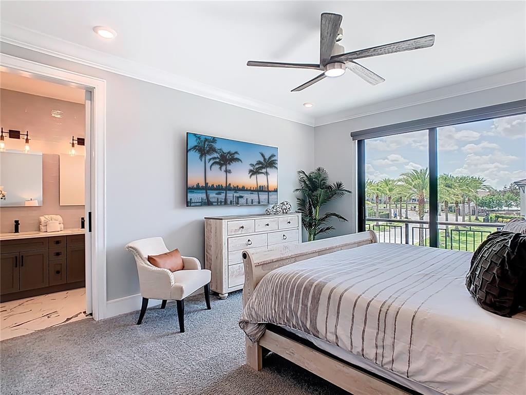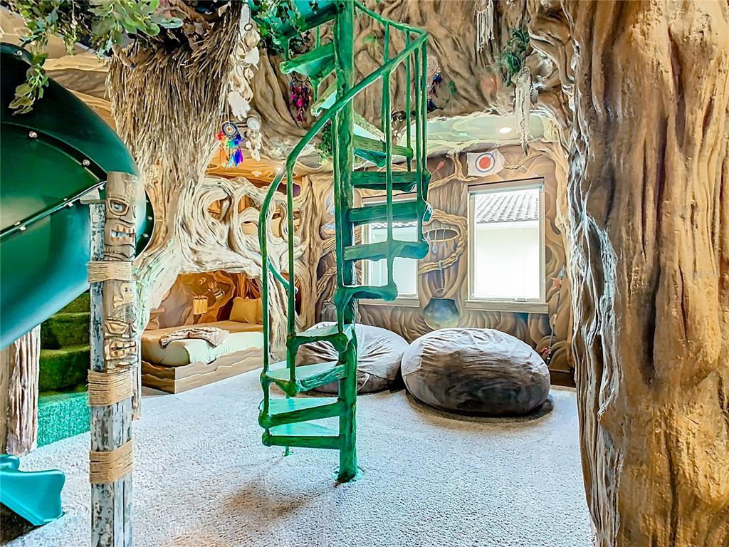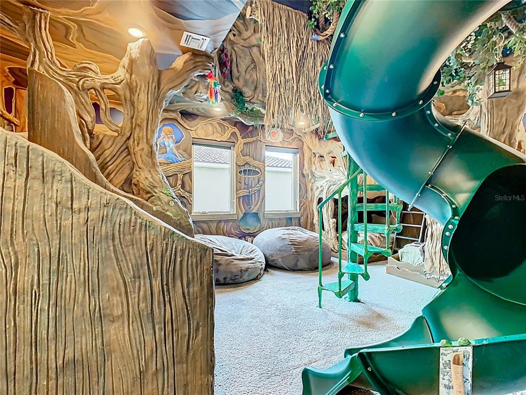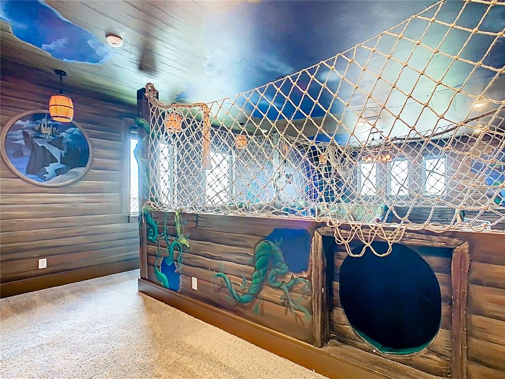 Two uniquely themed entertainment spaces plus a third-floor balcony with a hot tub offer dramatic, resort-style appeal and golf-course views.