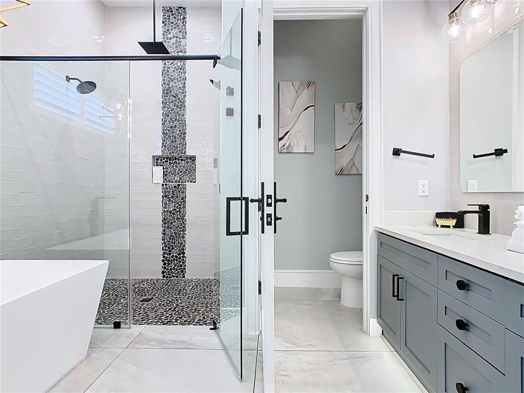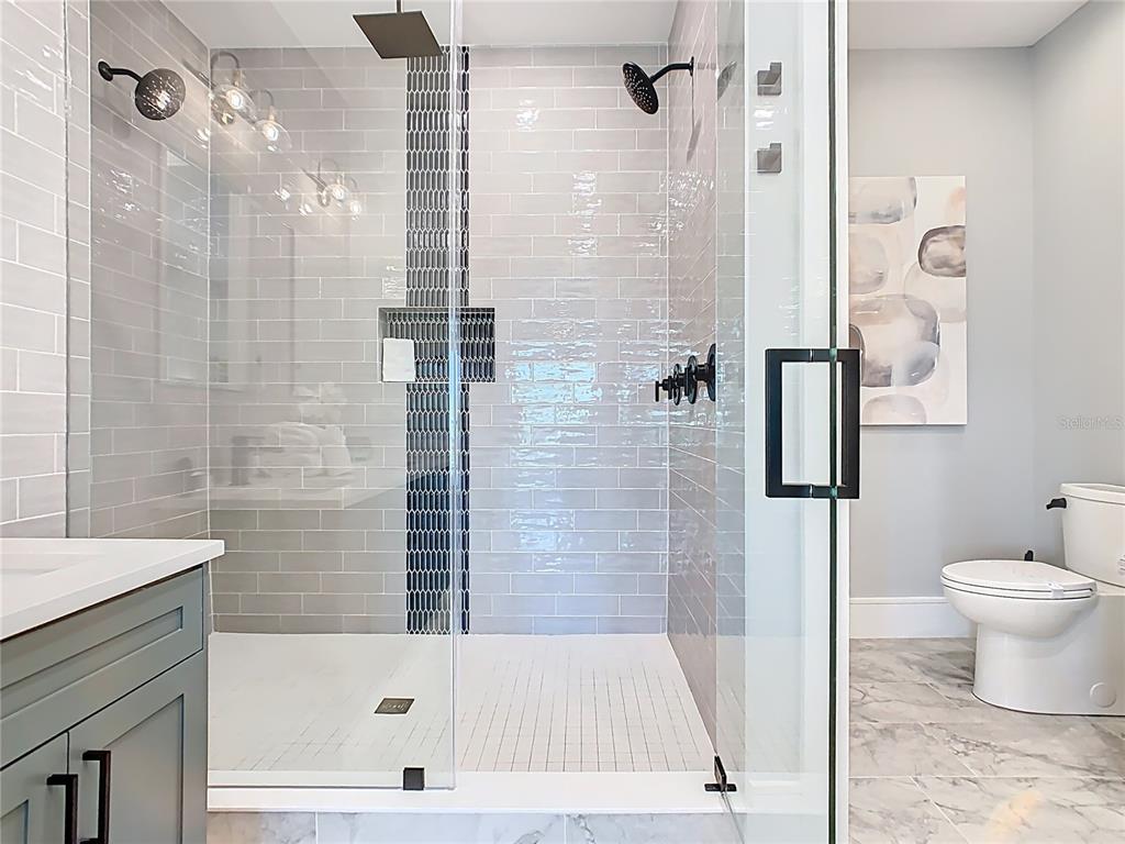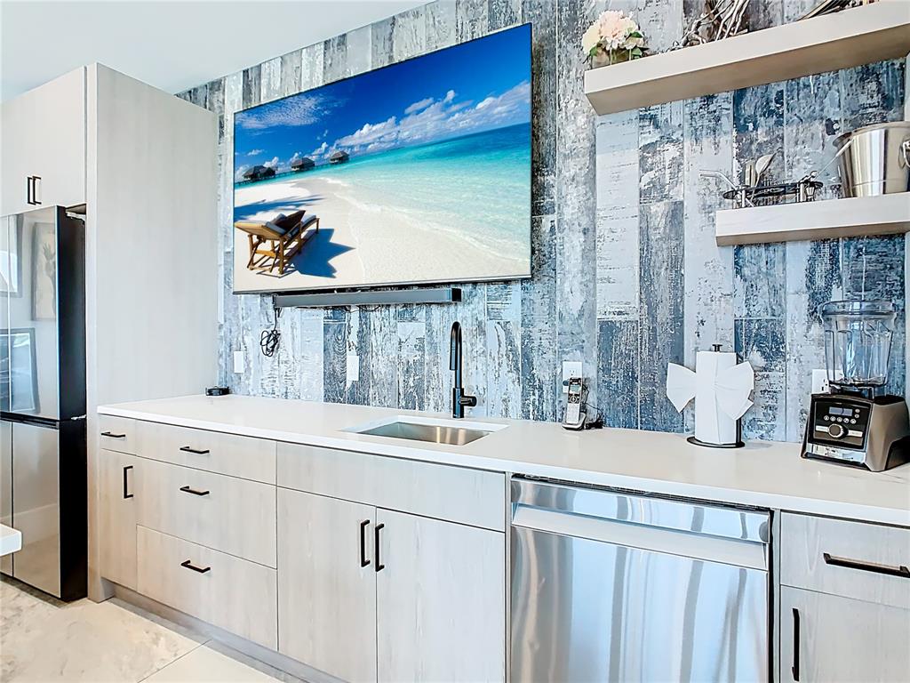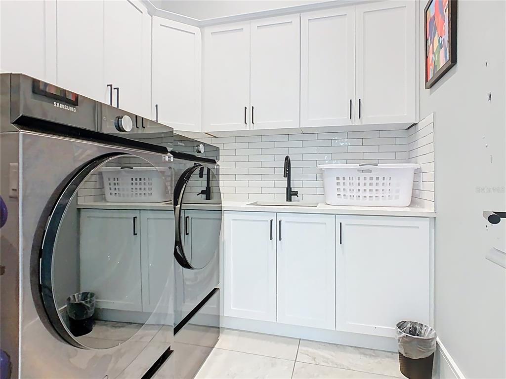 Gourmet chef’s kitchen with high-end appliances and dual in-unit laundry facilities for seamless stays, whether short or long-term.