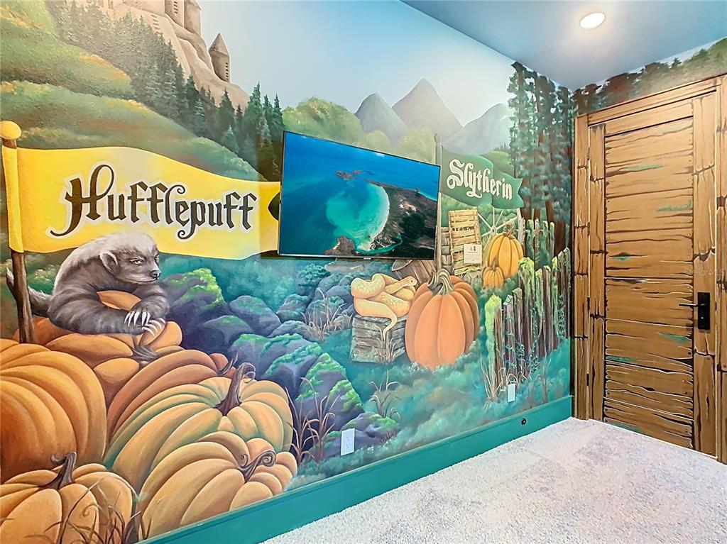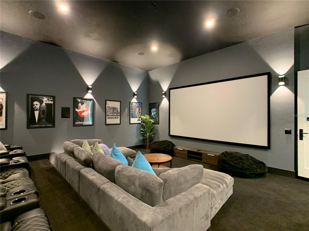 Dedicated theater room with projector and a 150” screen for immersive movie nights.