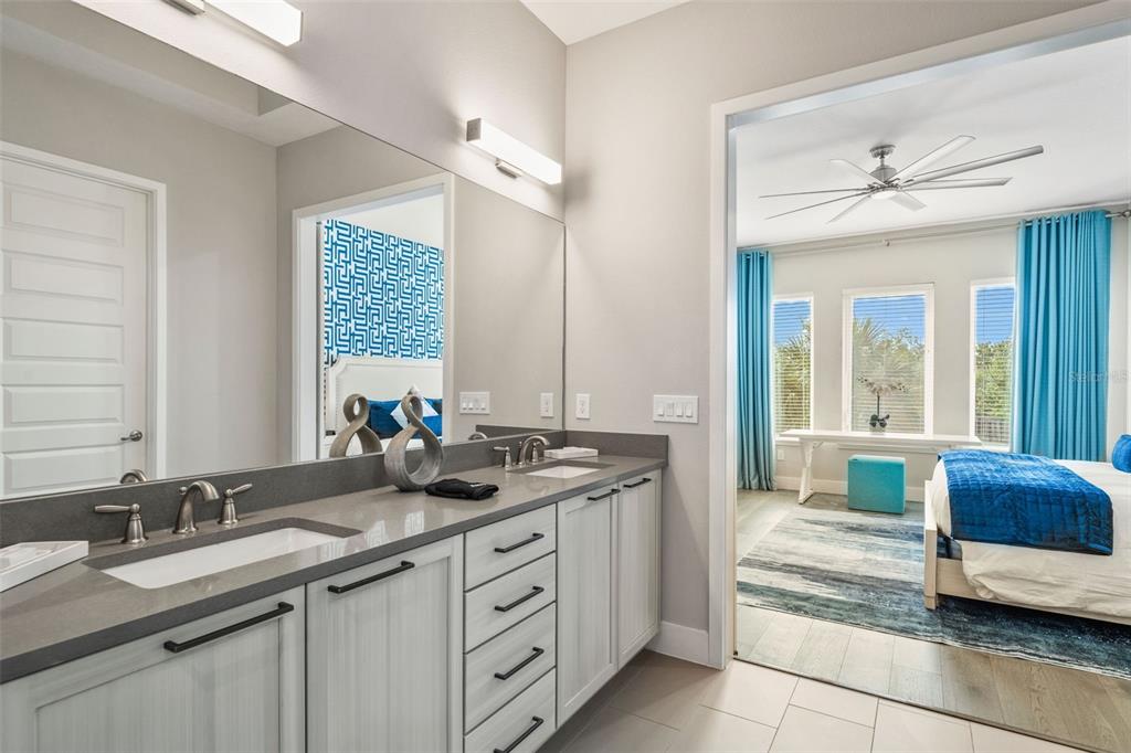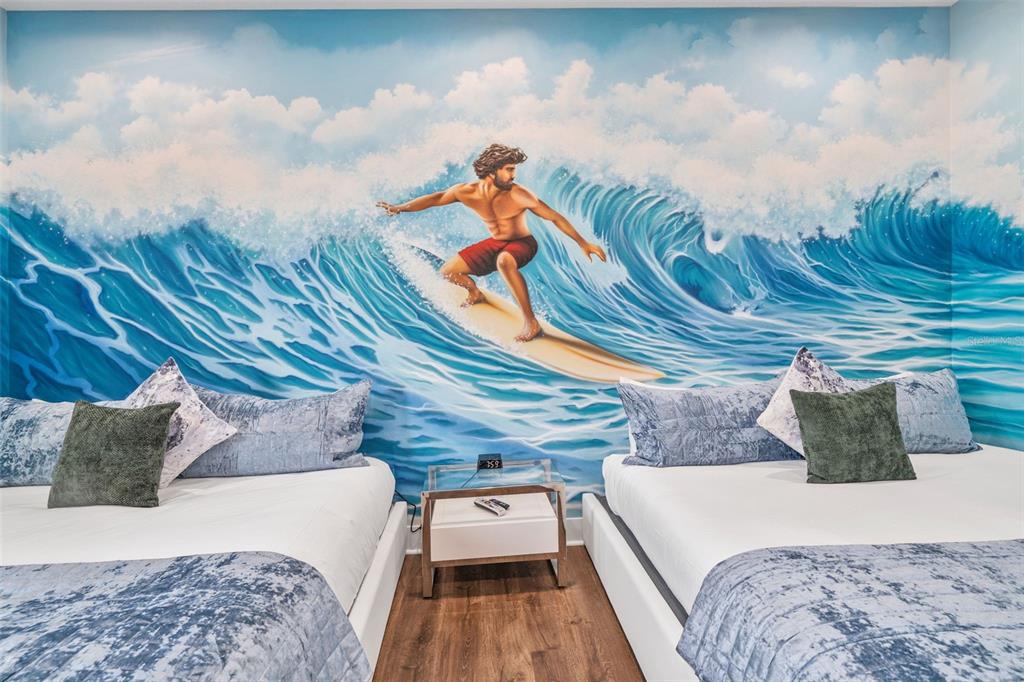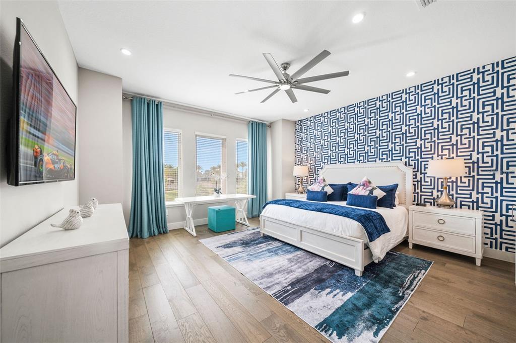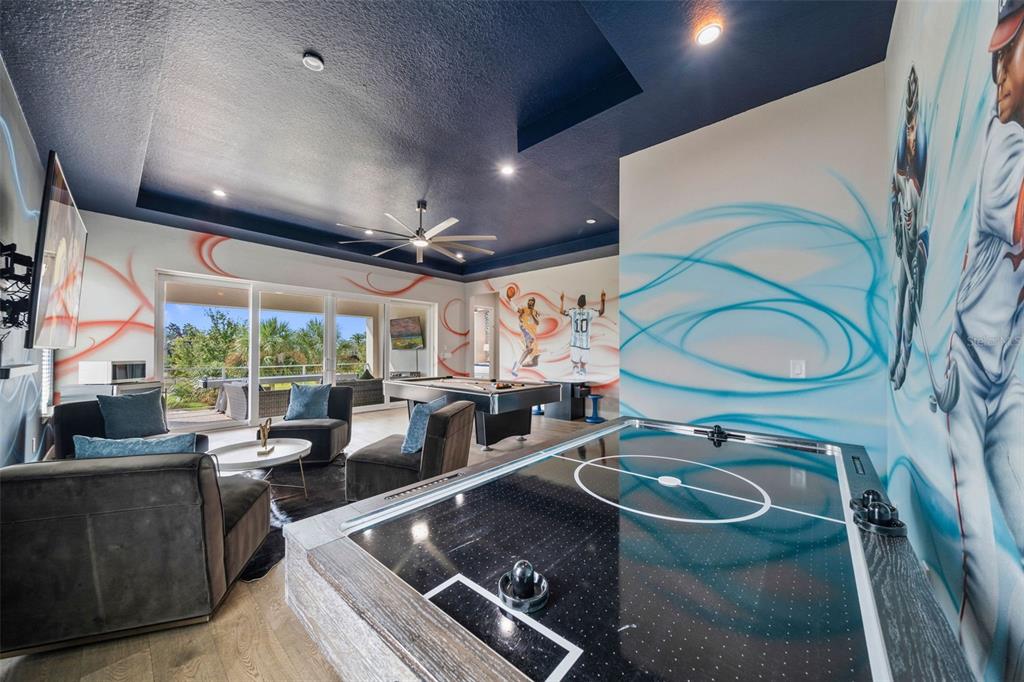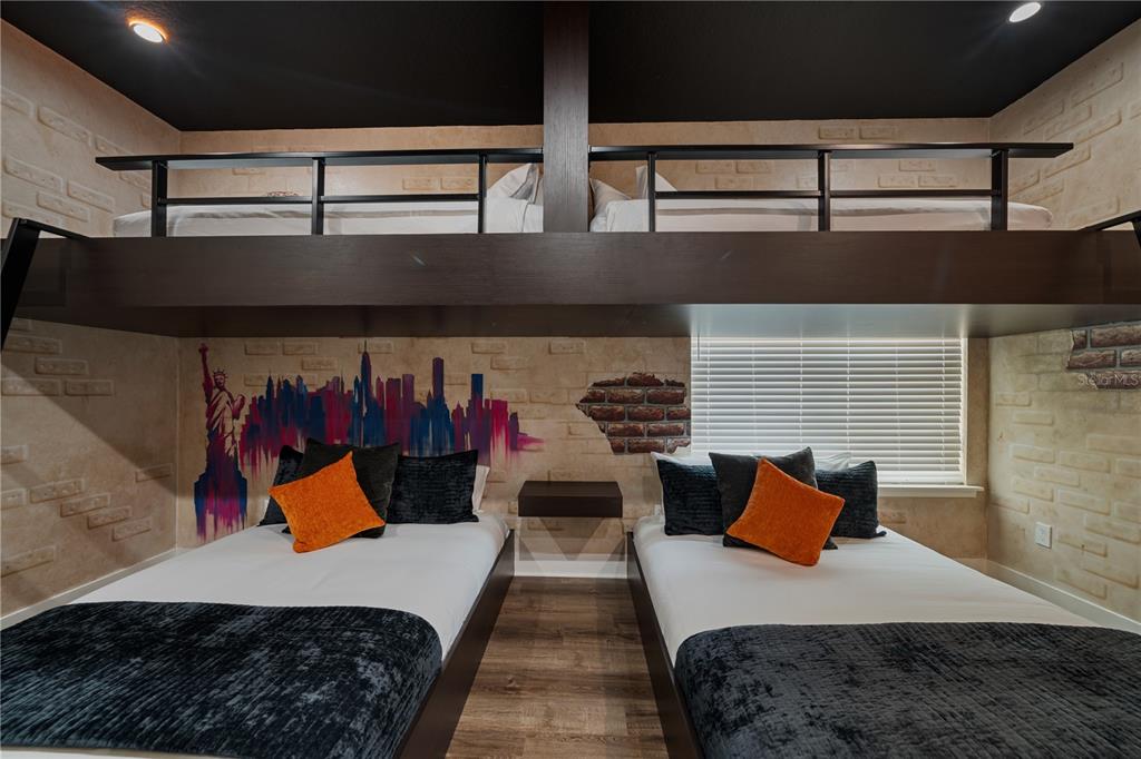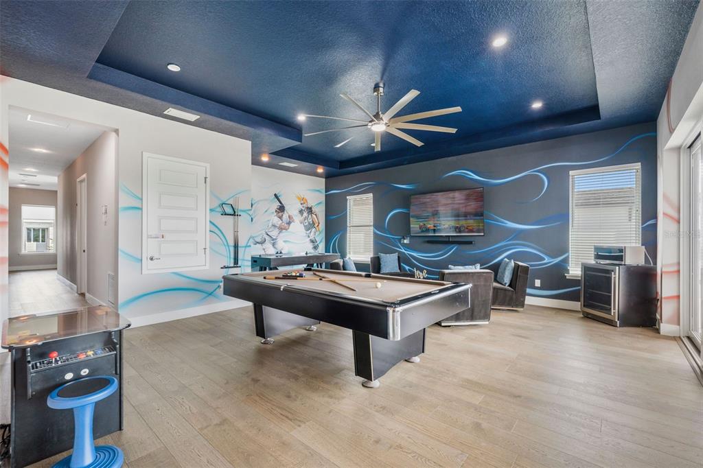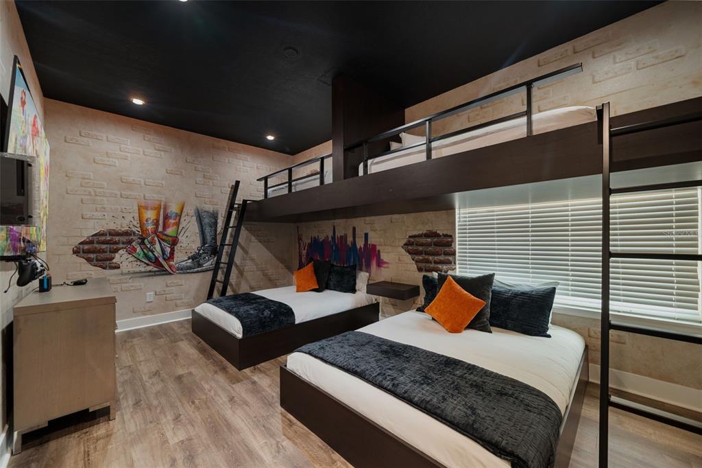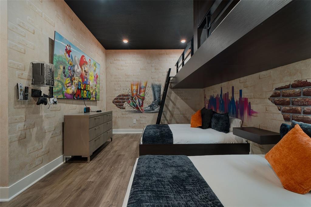 From the moment you step through the doors of this SPECTACULAR home you will realize you have found VACATION LUXURY at its finest. Welcome to Nicklaus Manor at Reunion located in the exclusive Bear’s Den community at Reunion Resort. This well appointed and meticulously kept 6 Bedroom, 6 Full Bath En suite, and 3 half bath home, is being offered TURN KEY. The Santa Barbara Model boasts high end finishes throughout with an open floor plan that consists of a first floor primary bedroom that includes a HUGE custom walk-in owner’s closet with the ability to lock off for privacy as well as additional closet for guests, dual sinks, a large walk-in shower and soaking tub. There is an 2nd en suite guest bedroom on the first floor. The spacious chef’s kitchen includes a large island with seating for 4 ppl., an abundance of hardwood cabinets with crown moulding, quartz countertops, stainless JENN-AIR appliances that include a Gas Range, two refrigerators, two dishwashers, convection oven and more. Enjoy quiet meals in the formal dining area with seating for 10 ppl. Adjacent to the dining area is a spacious wet bar area with wine racks, two beverage coolers and additional cabinets for your convenience. Recent enhancements to the home include a converted garage to a state of the art Golf Simulator, two professionally themed children’s rooms, decorative accent walls and decor were added throughout the home, and updated movie theater with gaming consoles. The expansive loft area has additional seating, air hockey, pool table, classic arcade game console and a beverage cooler, making this space ideal for both kids and adults to enjoy hours of entertainment. Step outside the loft area to a spacious covered lanai complete with new patio furniture, shuffleboard and an amazing views of the pool deck and the Bear’s Den residents only park. The two remaining bedrooms one being an additional primary suite that offers private access to a covered lanai on the second floor. As you step outside to an island oasis enjoy countless hours of enjoyment on your amazing pool deck, featuring a covered lanai with ample seating for family & guests, a lagoon style pool, jacuzzi and beautiful water feature. There is a summer kitchen with a decorative tile backsplash, and a pool half bath just off the lanai. This amazing home is a great opportunity for a vacation rental, second home or primary residence and is walking distance to the Jack Nicklaus clubhouse where the Traditions restaurant and bar is located as well as the Jack Nicklaus Pro Shop. The Bear’s Den community features gated security within the gates of Reunion, a fantastic dog park that you can access from your back gate on you pool deck, a sand volleyball court and putting green to practice your game. Reunion Resort is a one of a kind 2300 acre Resort and Golf community that has many amenities including a water park complete with water slides, lazy river, zero entry pools & food and beverage service, 3 award-winning golf courses designed by the legends of golf (Palmer, Watson & Nicklaus), 11 pools throughout the community, mini putt putt golf, world class tennis courts, pickleball courts, playgrounds, dog parks, golf cart & bike rentals and several on-site restaurants to include fine dining. Reunion Resort is located just 6 miles to Disney and the parks, and a short drive to the Orlando International Airport. ACTIVE TRANSFERABLE MEMBERSHIP for the next owner. Future rental income and bookings can convey.